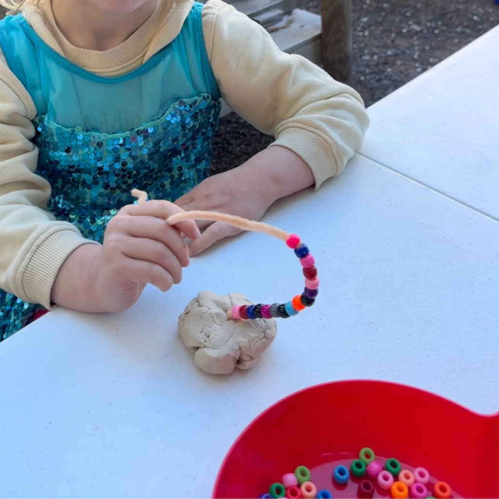 There are so many different types of activities you can try! We love this activity using beads, clay, and pipe cleaners because it's low prep and great for building strong fine motor skills